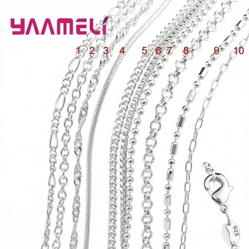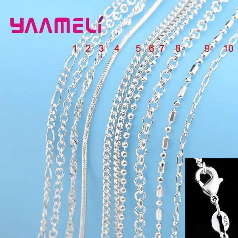 100% Authentic Genuine 925 Sterling Silver Link Chain Necklace with Lobster Clasps fit Men Women Pendant 10 Designs 16-30 Inches