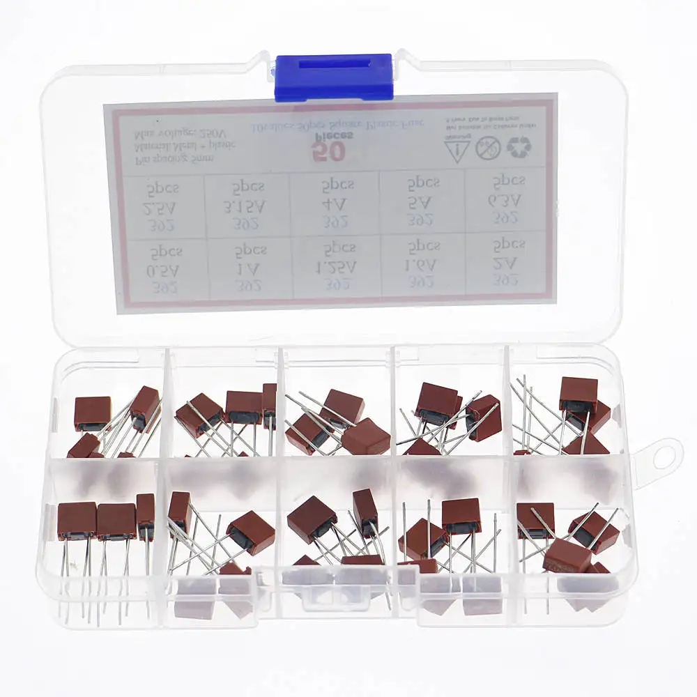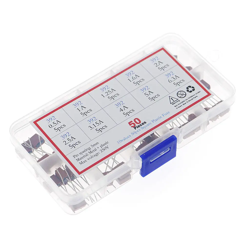 50Pcs/Box 10 Kinds x 5pcs 392 Square Fuse Plastic Electrical Assorted Fuse Mix Set 0.5A 1A 1.25A 1.6A 2A 2.5A 3.15A 4A 5A 6.3A