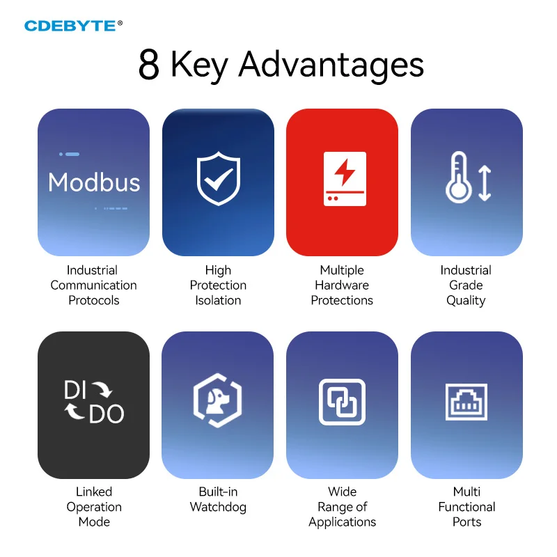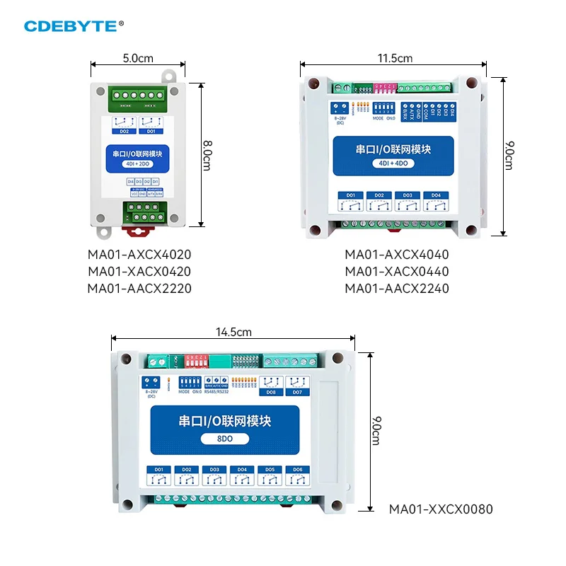 ModBus RTU Serial IO Module RS485 Interface AI DI DO 8 Digital Outputs Rail Installation 8~28VDC CDEBYTE MA01-AXCX4020