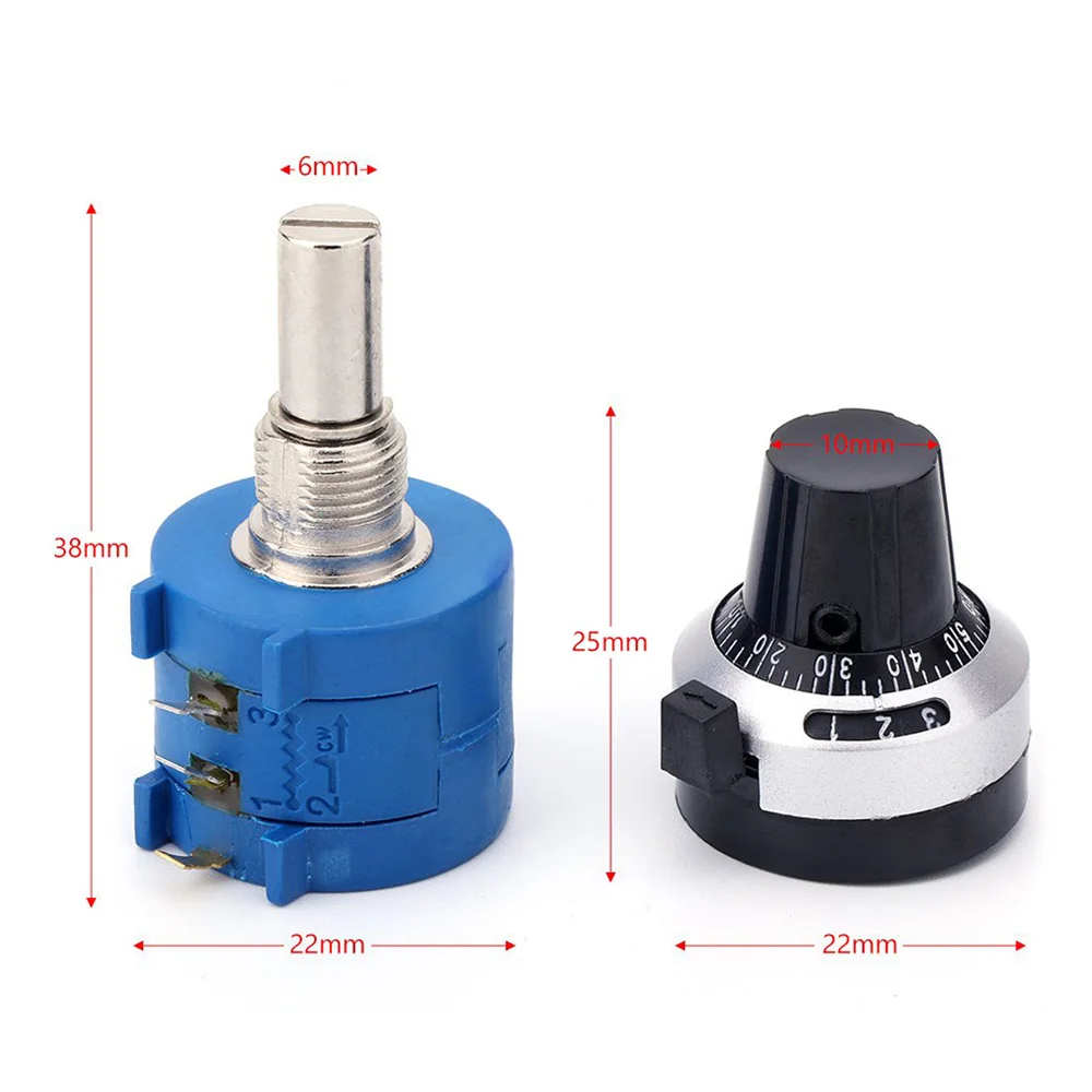 3590S Wirewound Potentiometer 500R 1K 2K 5K 10K 20K 50K 100K Ohm with High Precision 10 Turns Rotary Potentiometer Dial Knob