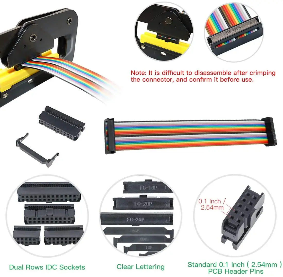 Fc-8 10 14 16 20 34 40 Pin female connector IDC cable connector kit set 2.54mm pitch for flat strip cables and IDC connectors