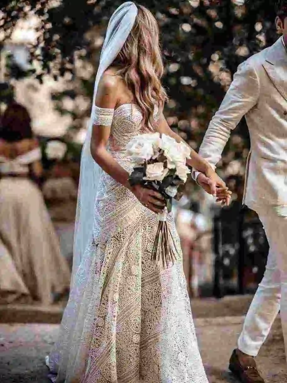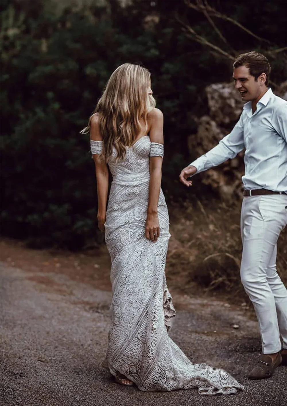 Lace Mermaid Wedding Dresses With Removeable Sleeve Sweethear Sweep Train Custom Made Vestido De Noiva