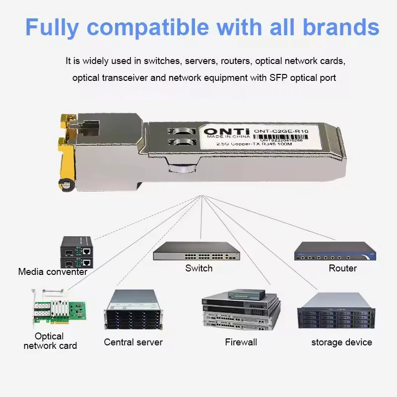 ONTi 2.5G RJ45 SFP Module 2.5Gbps SFP Copper RJ45 SFP Transceiver Module Compatible with Cisco/Mikrotik Ethernet Switch