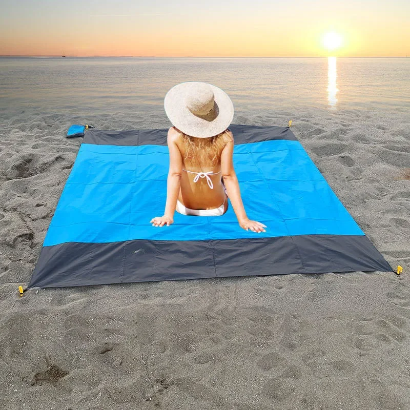 2x2.1m Waterproof Pocket Beach Mat Blanket Folding Camping Mattress Portable Lightweight Mat Outdoor Picnic Mat Sand Beach Towel