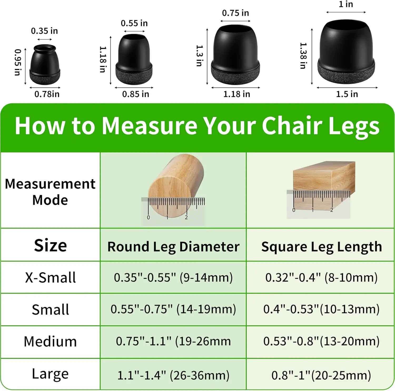 8pcs Round Table Chair Leg Floor Protector Foot Cover Black Anti- Slip Silicone Furniture Feet No Scratches for Hardwood Floors