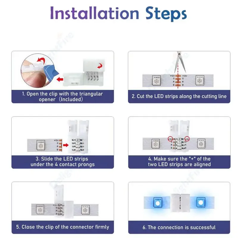 10pcs LED Strip Connector Solderless Led Extension Wire 4PIN I Shape Corner Connector For 10mm 3528 5050 RGB LED Strip Lights