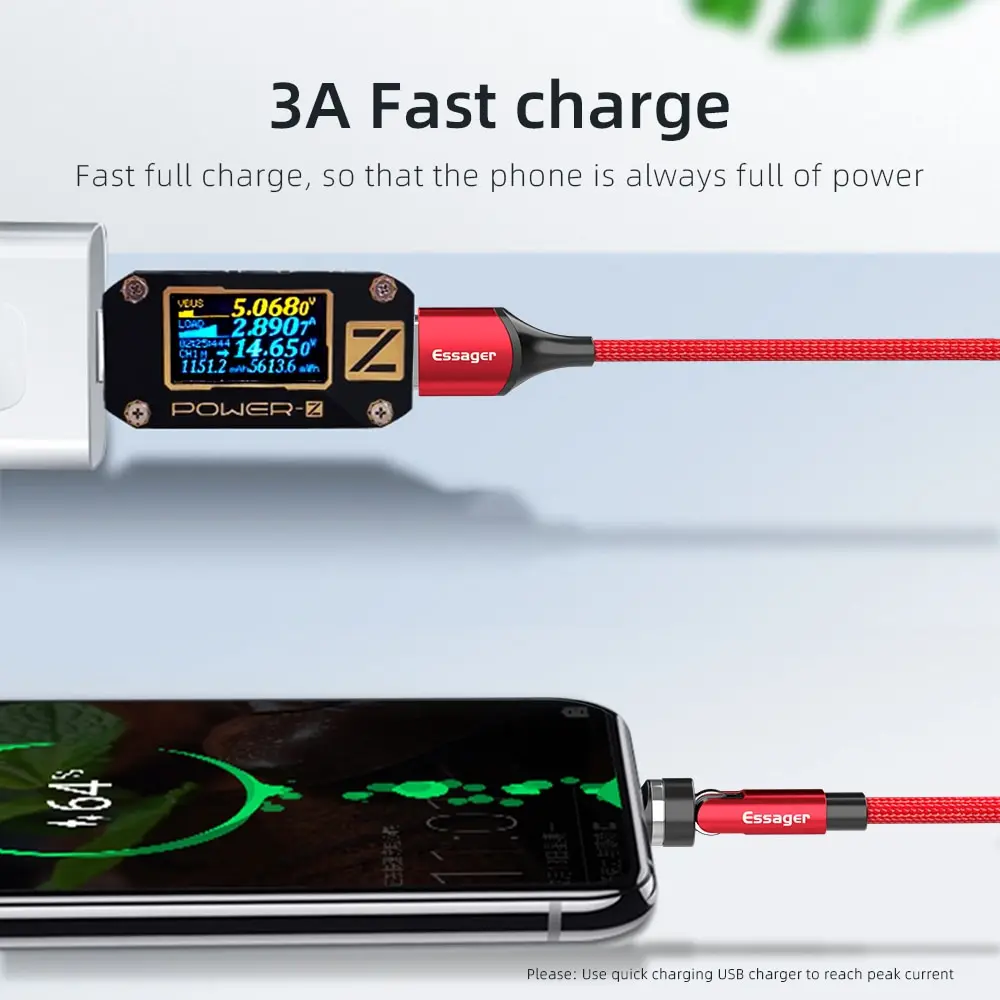 Essager 2M 540 Rotate 3A Fast Charging Magnetic USB Type C Cable For Xiaomi Magnet Charger Phone Data Wire Cord