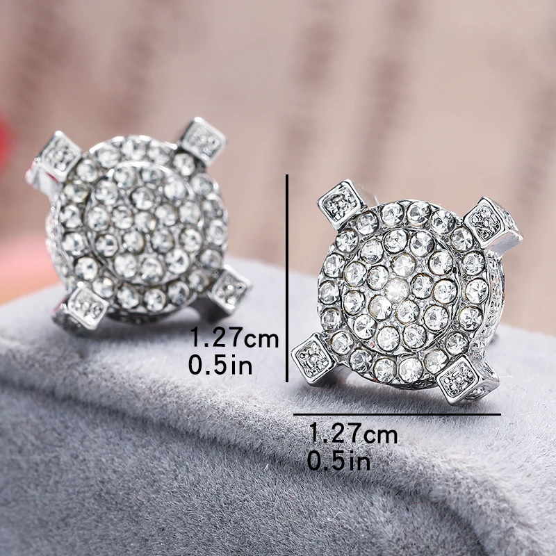 2023 New Round Circle Stud Earring Gorgeous Paved Austrian Cubic Zirconia Ear Studs Women Men Jewelry