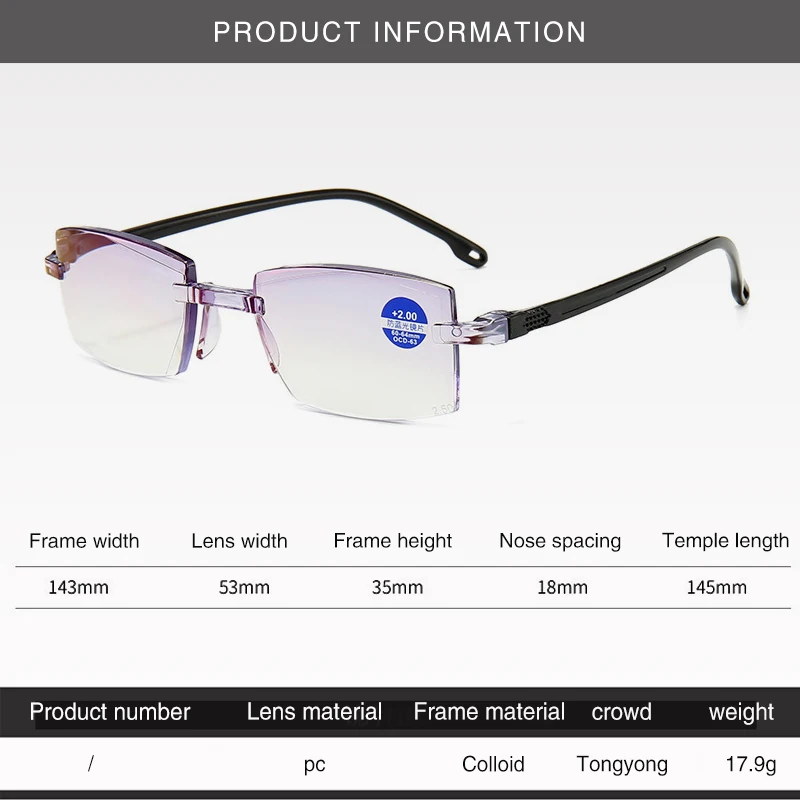Reading Glasses Men Magnification Eyewear Presbyopic Glasses Diopter Dimond Cutting +1.0 To +4.0 Blue Light Glasses