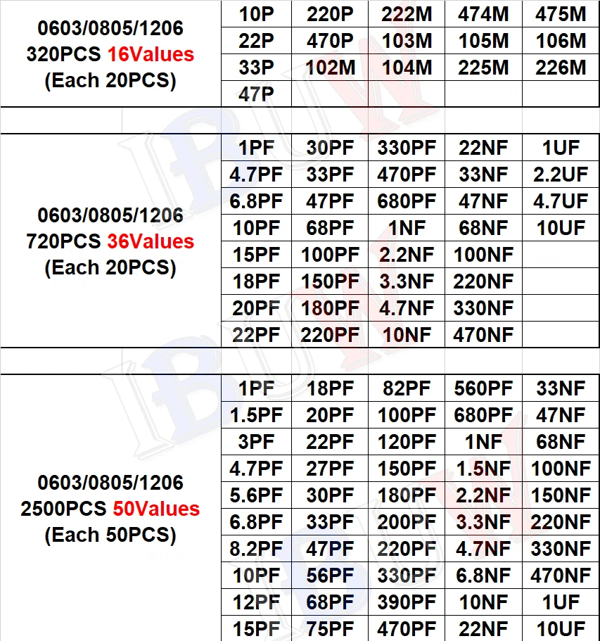 ALI shop - search results ... ... 1pack 16/36/50Values 320PCS 720PCS 2500PCS 0603 0805 1206 SMD Capacitor Kit igmopnrq Assorted Kit ibuw 1PF ~ 1UF ::: 2021 ::: :::