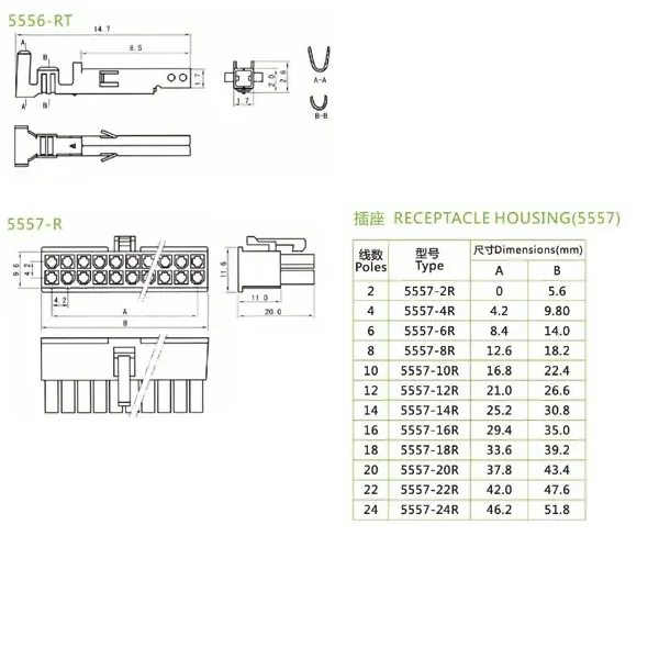 5pcs 5557 / 5559 automobile harness connector 2 4 8-16 pin electric motorcycle controller male and female plug wire length 30cm