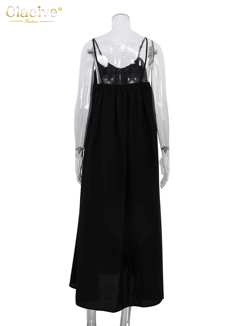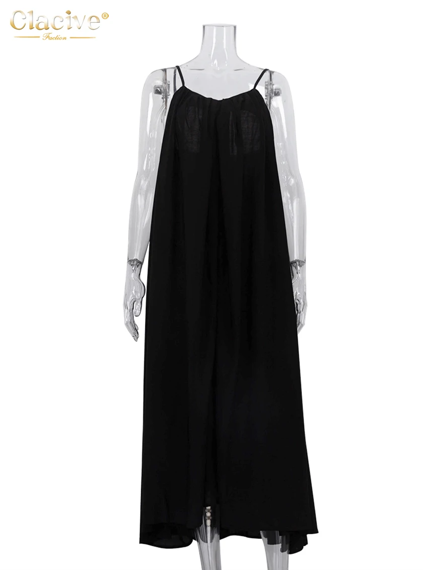 Clacive Summer Loose Black Women'S Dress 2023 Fashion Strap Sleeveless Ankle-Length Dresses Elegant Backless Female Sundress