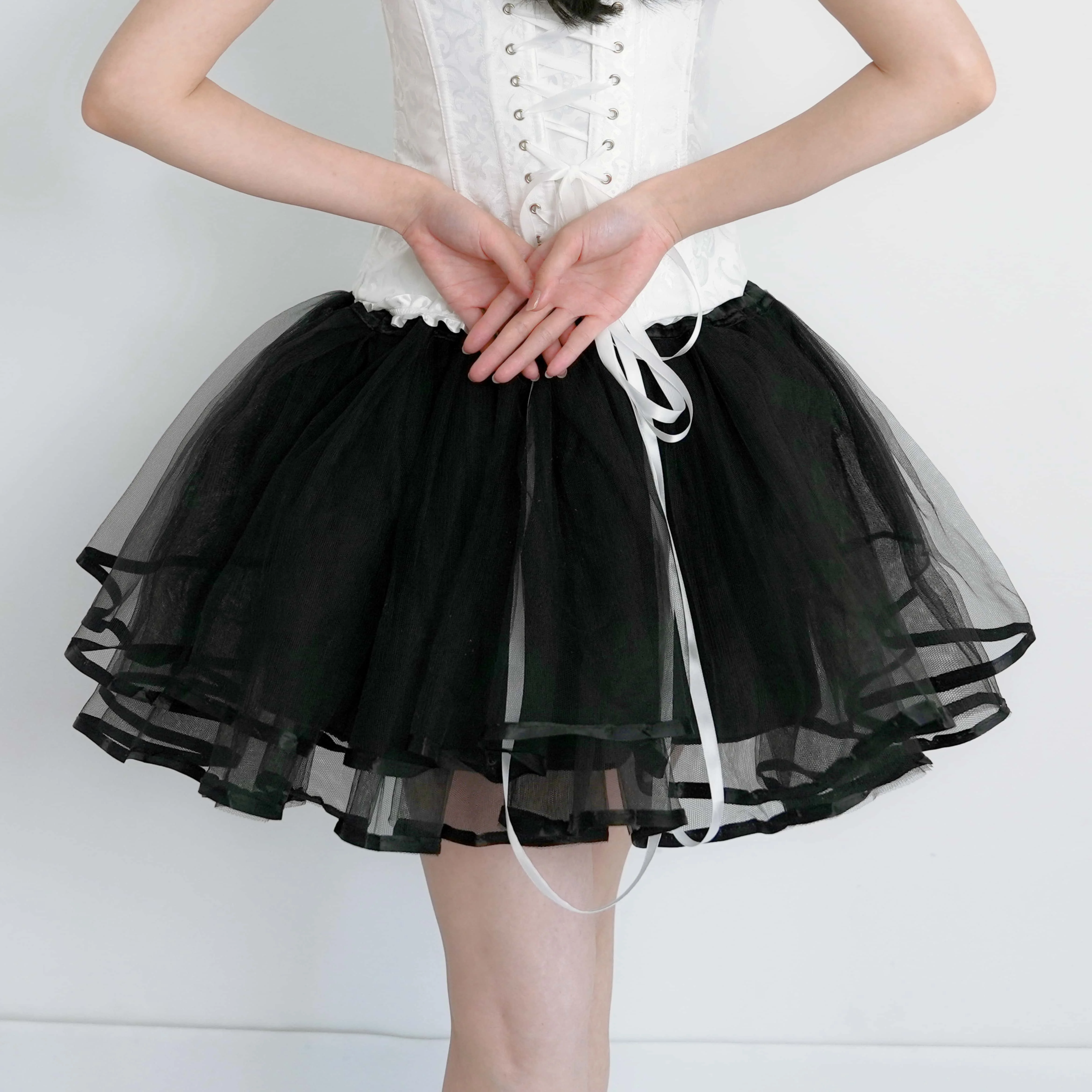 Cosplay Soft Mesh Petticoat Lolita Soft Girl Half Skirt Colorful Tutu Skirt Party Dance Skirts with ribbon
