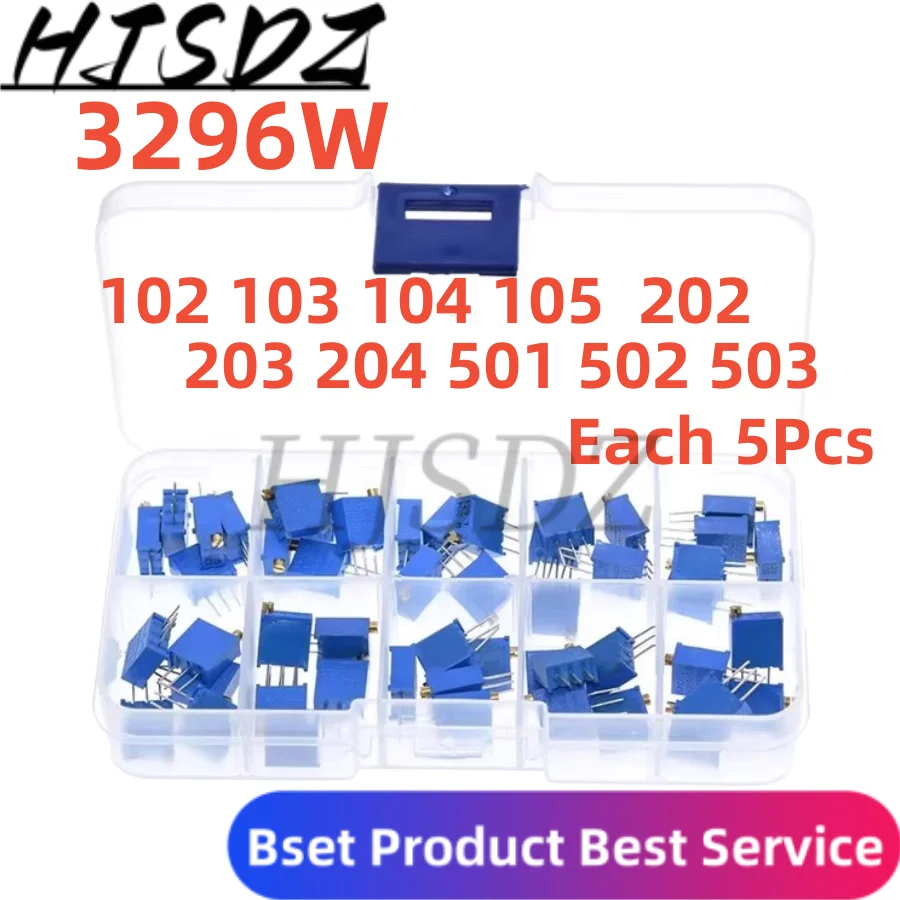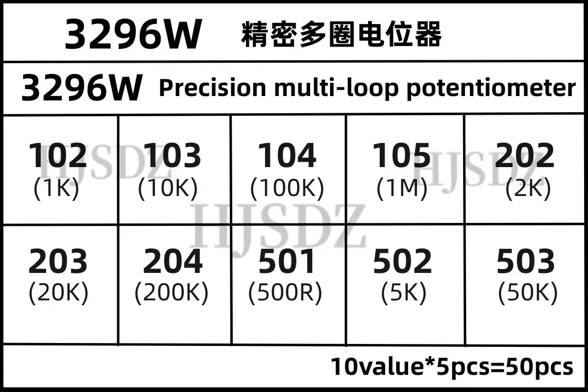 50PCS 3296W Multiturn Trimmer Potentiometer Kit High Precision 3296 Variable Resistor 500R 1K 2K 5K 10K 20K 50K 100K 200K 1M New