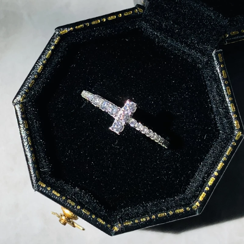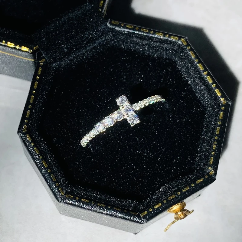 aliexpress , ali , shop , ali shop , online , store , online shop , online store , buy , sell , Huitan Simple Stylish Cross Design Women Rings Full Paved Crystal Cubic Zirconia Delicate Bridal Ring for Wedding Trendy Jewelry