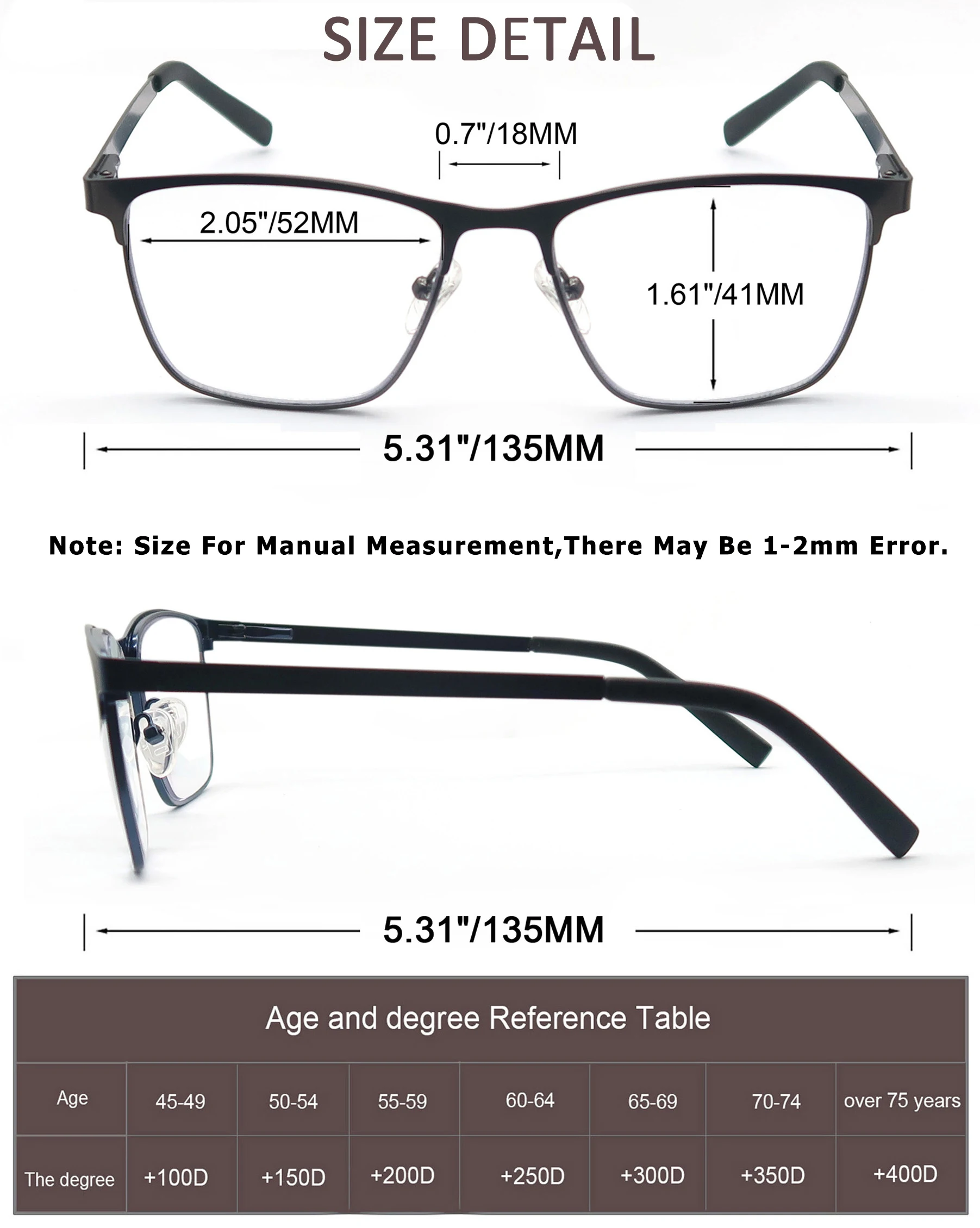Modfans Blue light Reading Glasses for Men Metal Frame Magazine Readers Magnifier Presbyopia Lens Eyewear Diopter +0.75~4.0