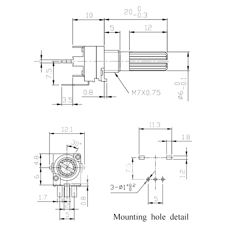aliexpress , ali , shop , ali shop , online , store , online shop , online store , buy , sell , 20PCS RK097 Potentiometer Vertical Single Link B2K 5K 10K 20K 50K 100K 500K 1M Ohm 15mm Gearless 3Pin