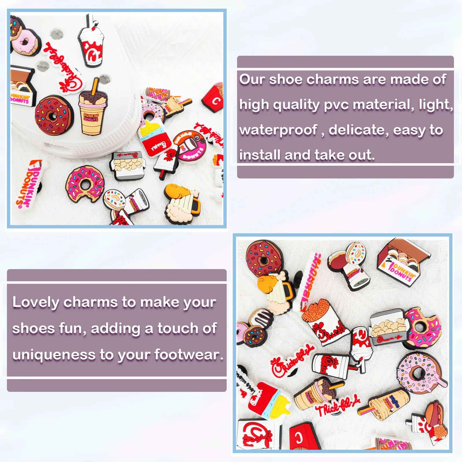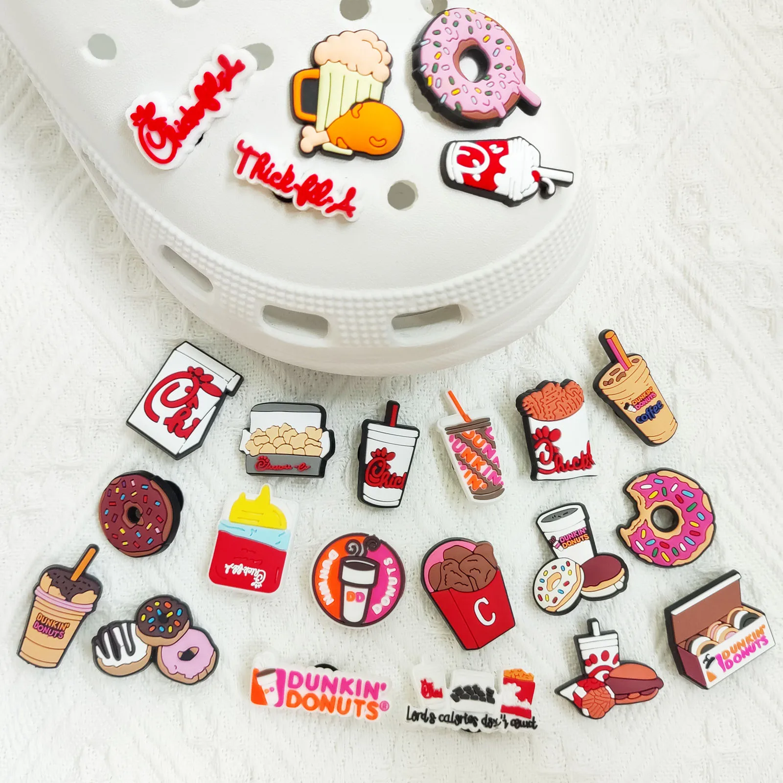 Shoe Charms For Shoe Decoration 23pcs Cute Food Cartoon Donuts Milk Tea Charms Premium Quality Popular Charms Accessories