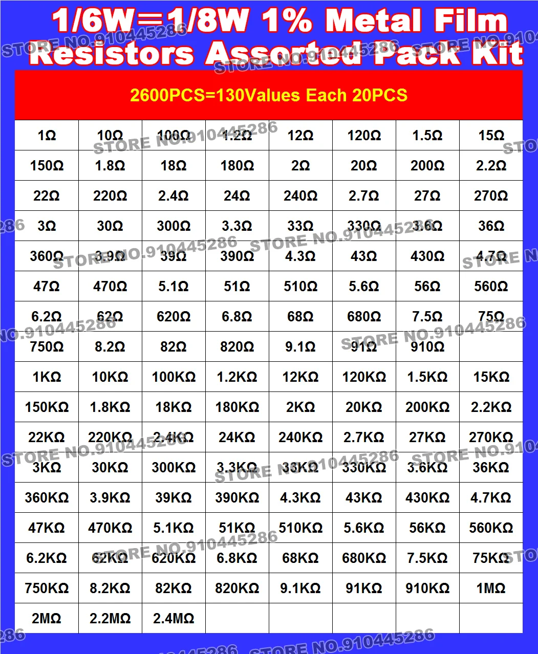 aliexpress , ali , shop , ali shop , online , store , online shop , online store , buy , sell , 2600Pcs 130Values 1/6W=1/8W 0.125W 1% Metal Film Resistors Assorted Pack Kit Set Lot Resistors Assortment Kits Fixed Capacitors