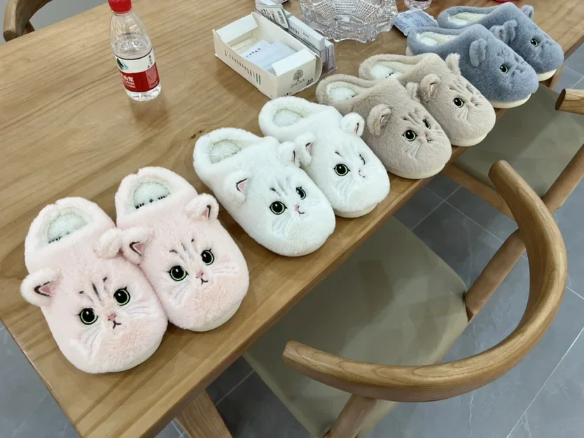 aliexpress , ali , shop , ali shop , online , store , online shop , online store , buy , sell , Cute Cat Slippers Fluffy Furry Women Home Platform Slippers Men Winter Plush Slides Indoor Fuzzy Slippers Lovely Cotton Shoes