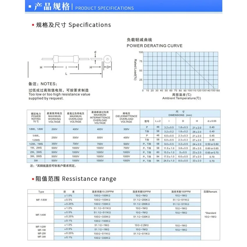 10K 12K 15K 18K 20K 22K 24K 27K 30K 33K 36K 39K 43K 47K 51K 56K 62K 68K 75K 82K 91K Ohm 1 Watt 1W 1% Metal Film Resistor