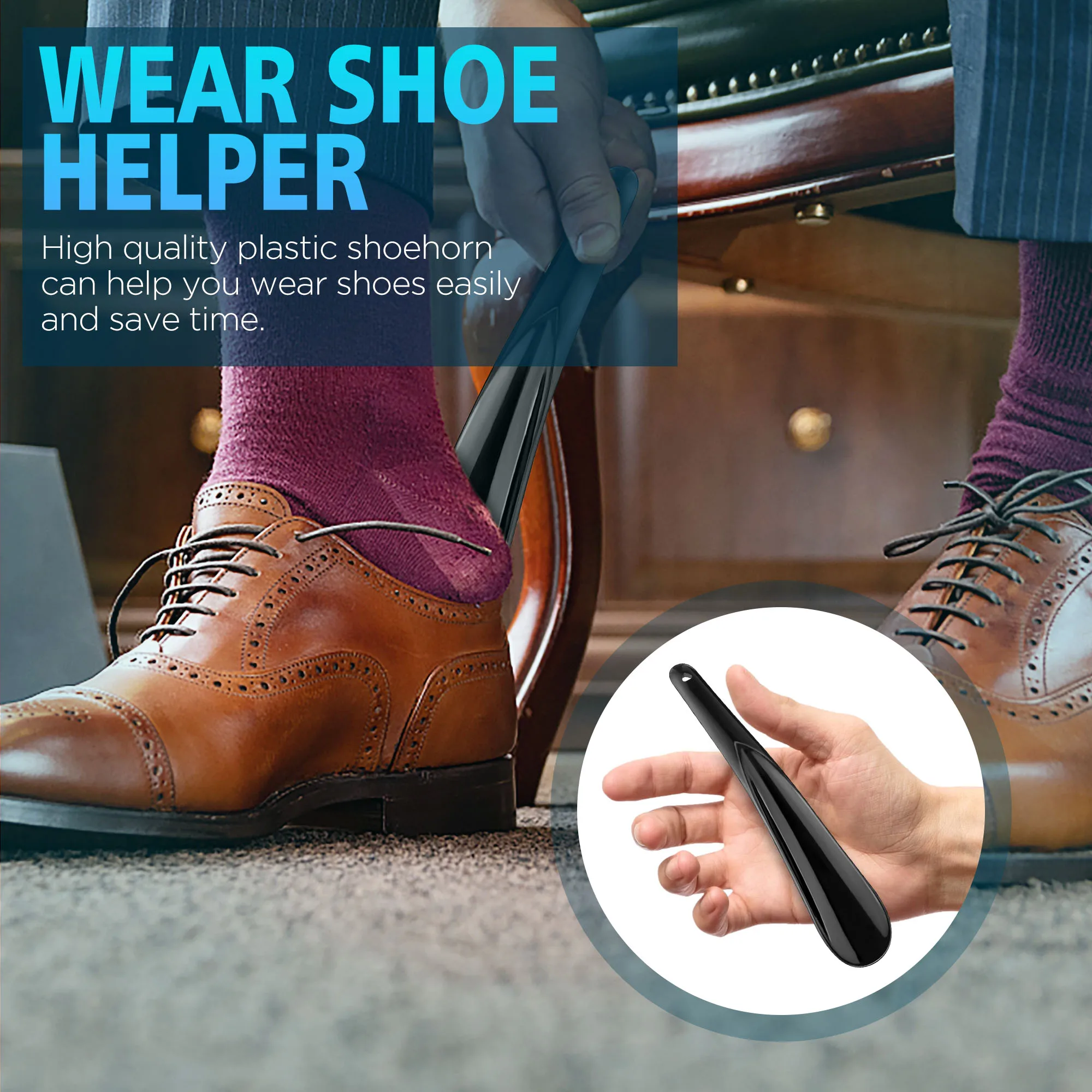 20cm Plastic Shoe Puller Flexible Sturdy Slip Shoe Horns Long Shoe Horn Spoon Shape Shoehorn Shoe Lifter Professional Black
