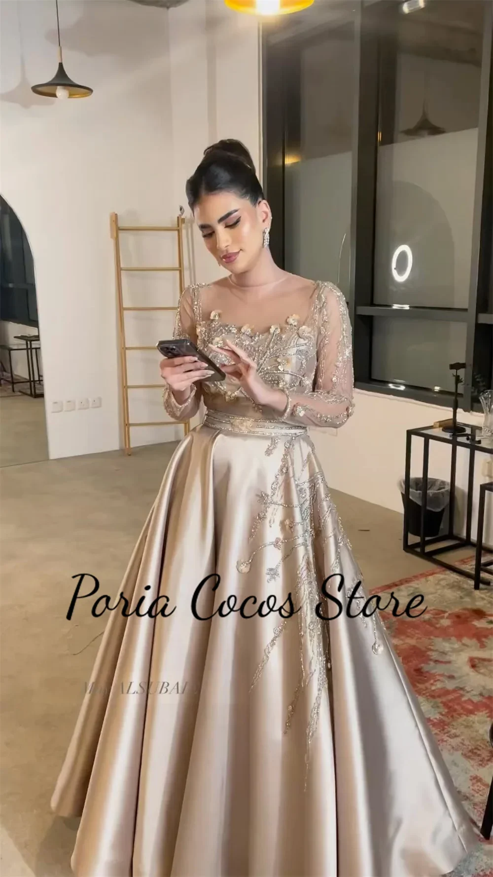 ALI shop - search results ... ... Customized Gorgeous A-line Party Dress Crew-Neck Illusion Long Sleeve Beaded Pleated Satin Applique Floor Length Prom Dresses ::: 2021 ::: :::