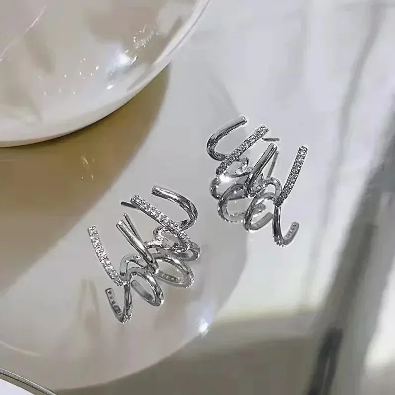 2026 New Shiny Four Claws Stud Earrings for Women Korean Rhinestone Zircon Earring Girls Birthday Party Wedding Fashion Jewelry