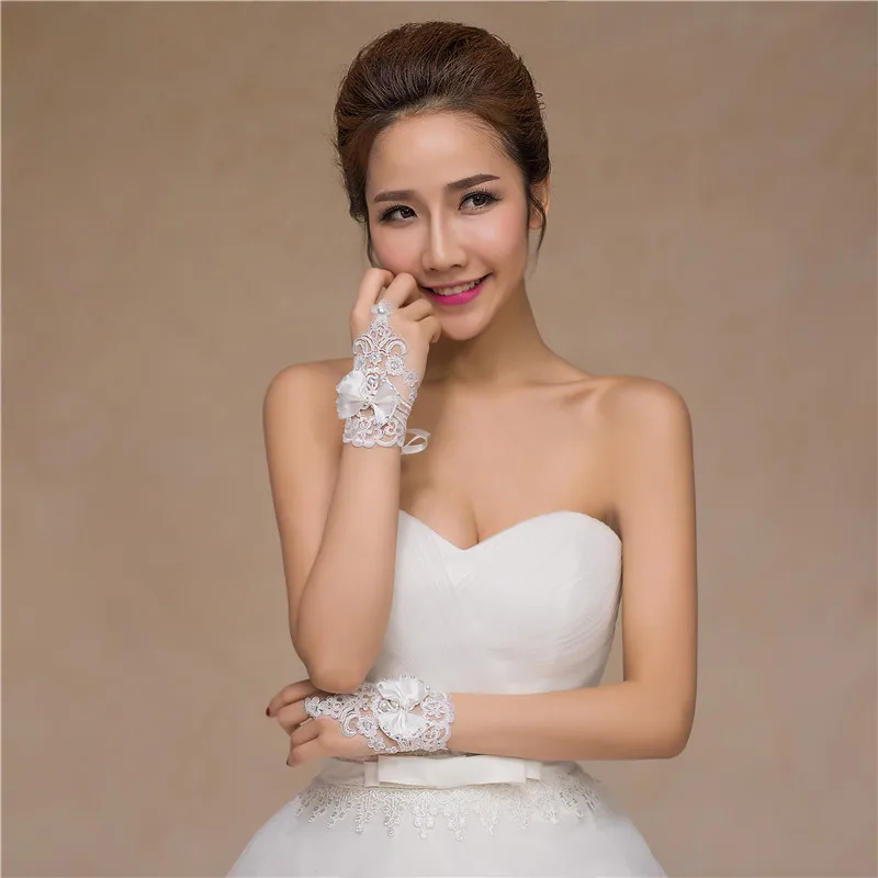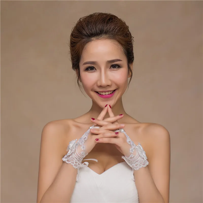 aliexpress , ali , shop , ali shop , online , store , online shop , online store , buy , sell , Elegan Lace Short Bridal Gloves Inlaid Rhinestone Bowknot Slim Bridal Fingerless Gloves White Ivory Wedding Gown Accessories