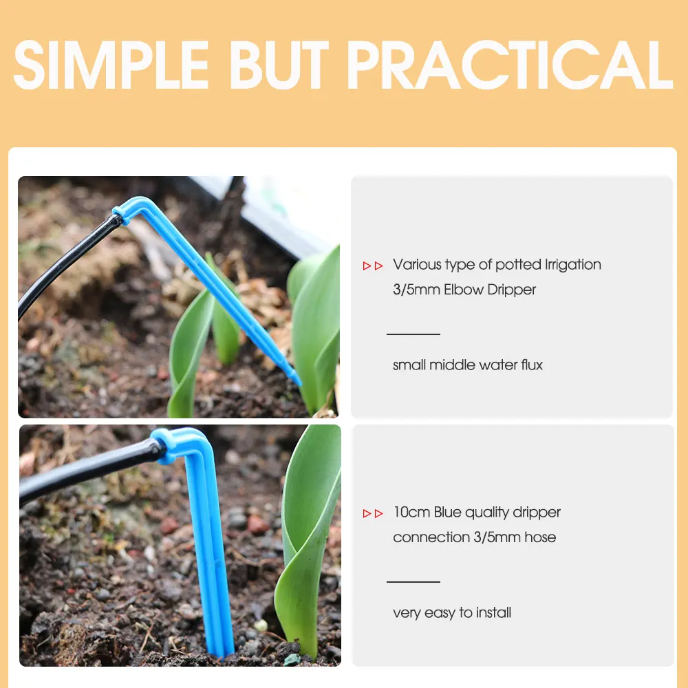 50pcs Garden 3/5mm Hose Bend Arrow 1/8'' Blue Drip Emitter Dripper Water Saving Sprinkler for Greenhouse Bonsai Micro Irrigation