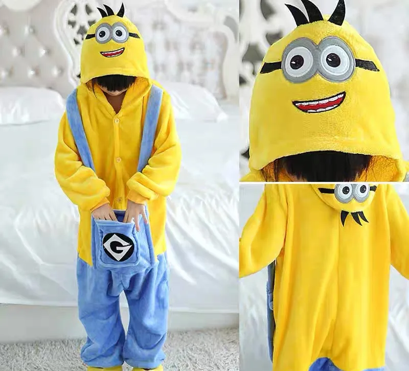 Minions Kigurumi Onesie Cosplay Anime Costume Winter Flannel Kawaii Pajamas Halloween Christmas Clothes