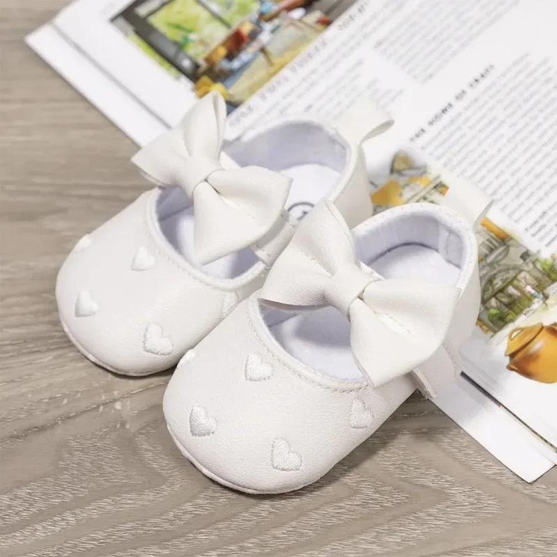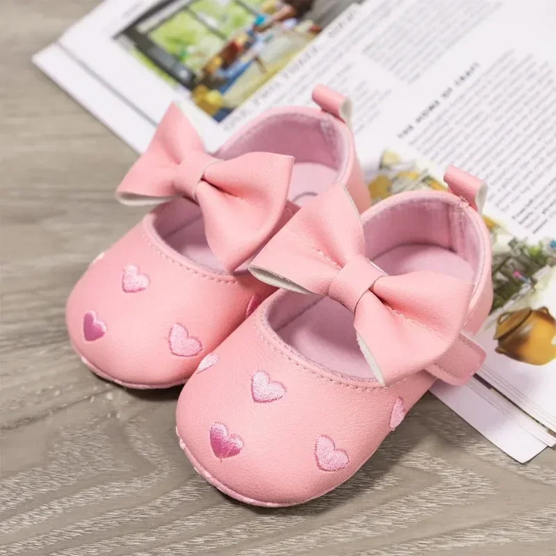Baby Girls 0-18 Months Indoor First Walker Shoes Soft Cotton Sole Non-Slip Classic Embroidery Bowknot Hook & Loop Infant Booties