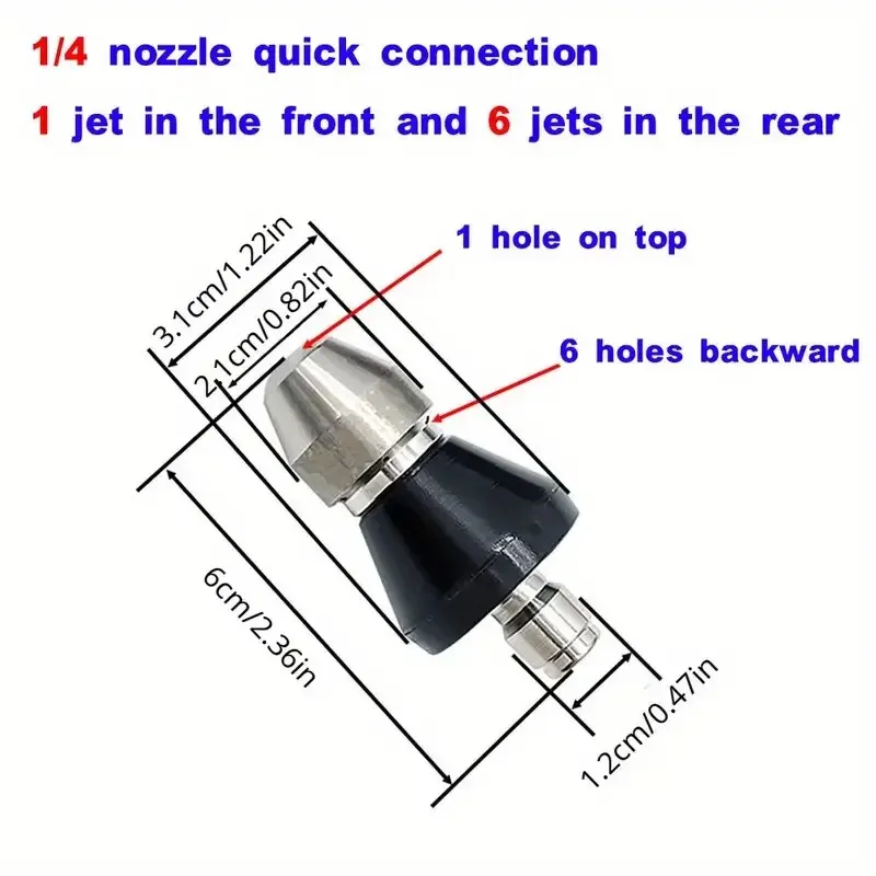 Metal 1/4''Quick High Pressure Washer 6 Jet Nozzle Universal Washing Machine Drain Pipe Dredging Cleaning Nozzle