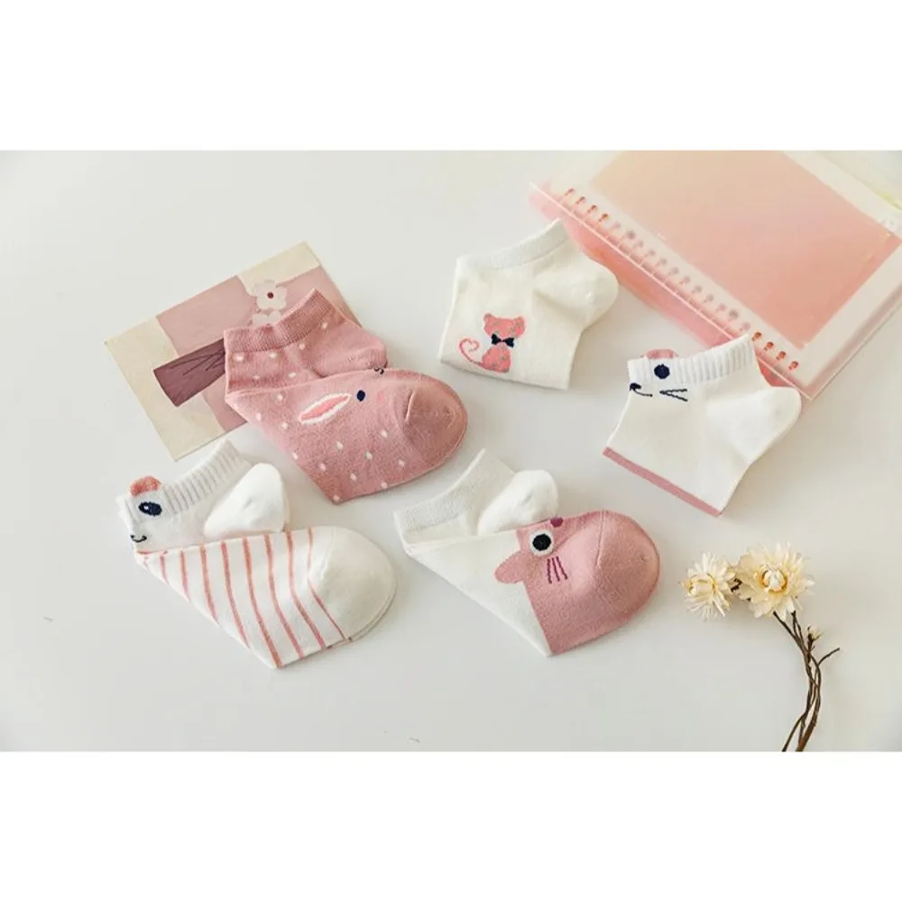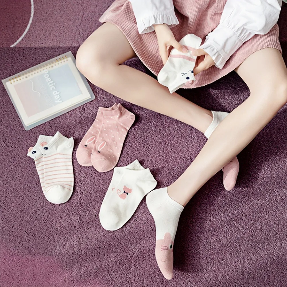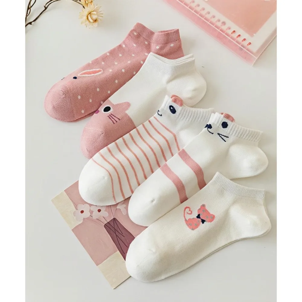 5 pairs Women's pink socks, cute style socks, popular spring and summer cotton socks, cute rabbit socks