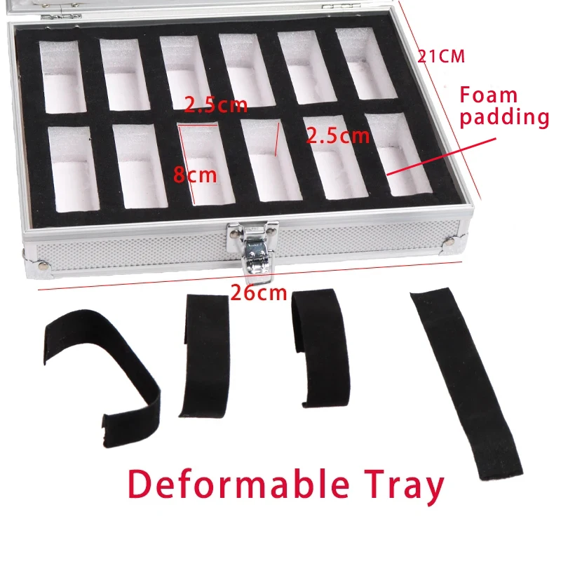Aluminum Structure Watch Storage Box 12 Grid Slot Jewelry Display Square Case Suede inside Rectangle Watch Holder for Organizing