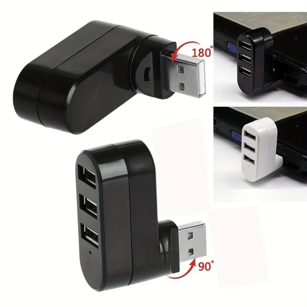 USB Hub 2.0 Adapter 180° Rotatable 3 Ports USB 2.0 U Disk Card Reader Splitter High Speed Data Transfer For Computer Accessories