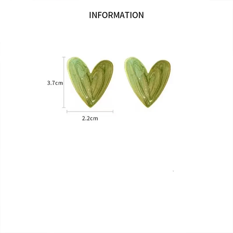 Heart Love Stud Earrings For Women Girl Minimalist White Green Color Enamel Posting Earrings Fashion Jewelry
