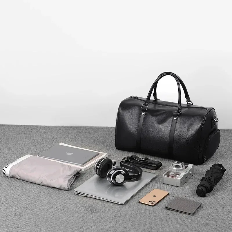 Retro New Short Trip Bag Large Capacity Sports Motorcycle Training Pu Waterproof Leisure Fitness Bag