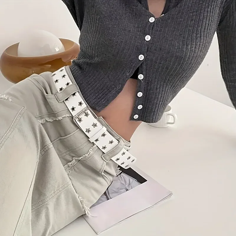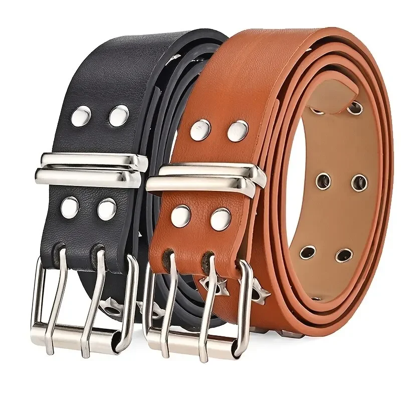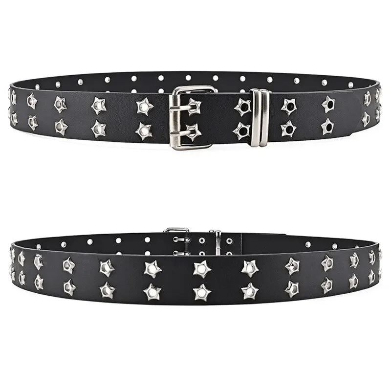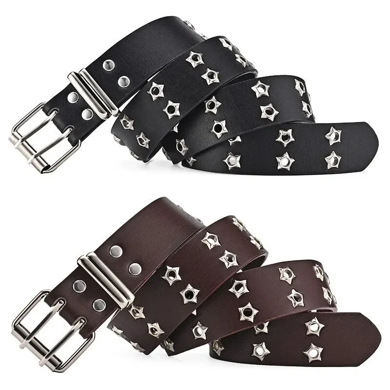 New Star Eye Rivet Belt Goth Style Double Pin Buckle Man/woman Fashion Casual Punk Style Pu Leather Waistband for Jeans Y2K Belt