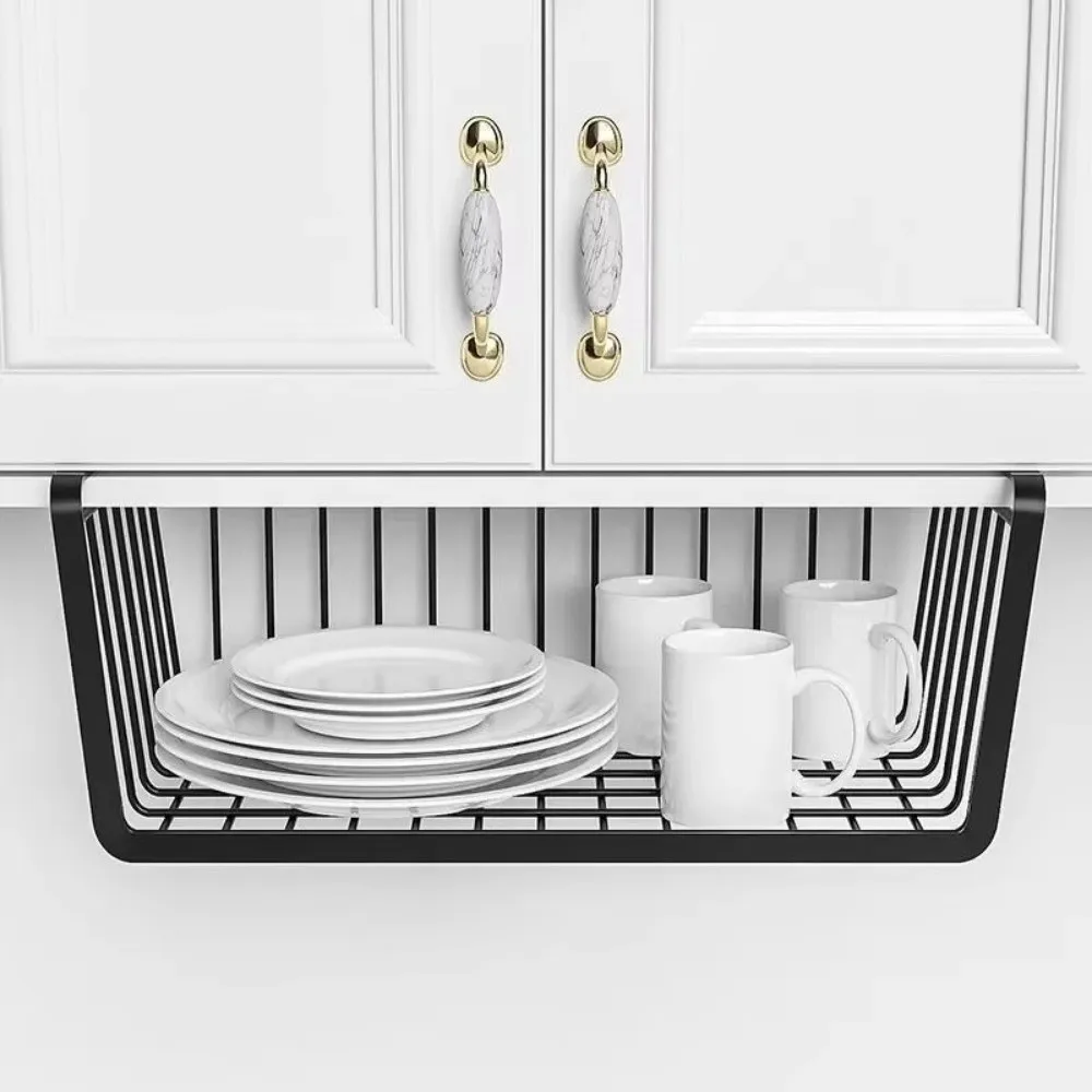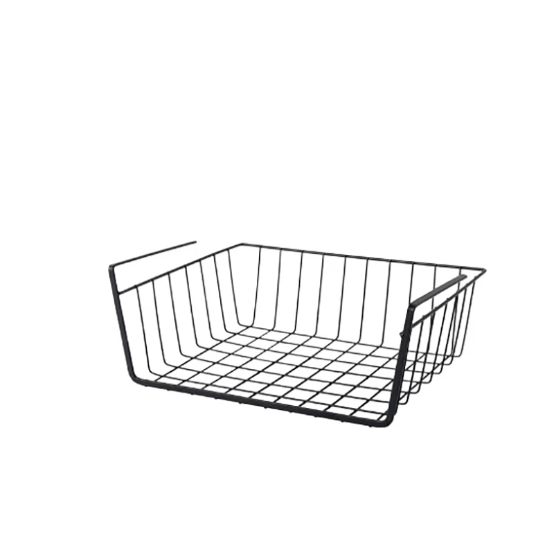 1pc White/Black Hanging Net Basket Iron Material Large Capacity Hanging Under Cabinet Wall Wardrobe Storage Basket Kitchen Tools