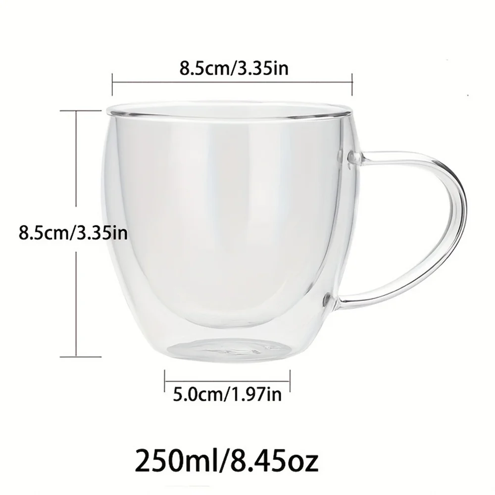 250ml Double Walled Glass Coffee Mugs Insulated Borosilicate Glass Coffee Cups with Handle for Cappuccino, Latte, Tea, Hot/Cold