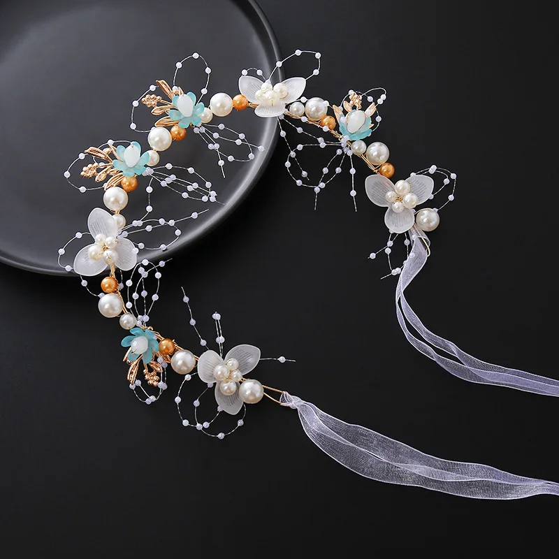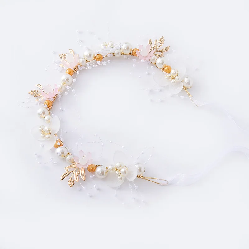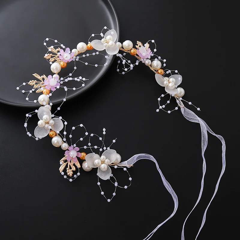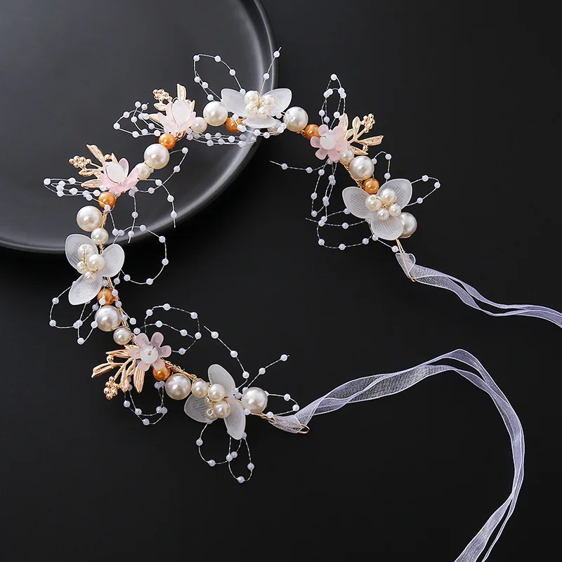 Bride headband pearl flower headband children's flower wreath super fairy princess hair accessory headband headband ribbon