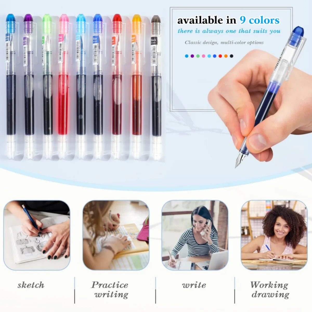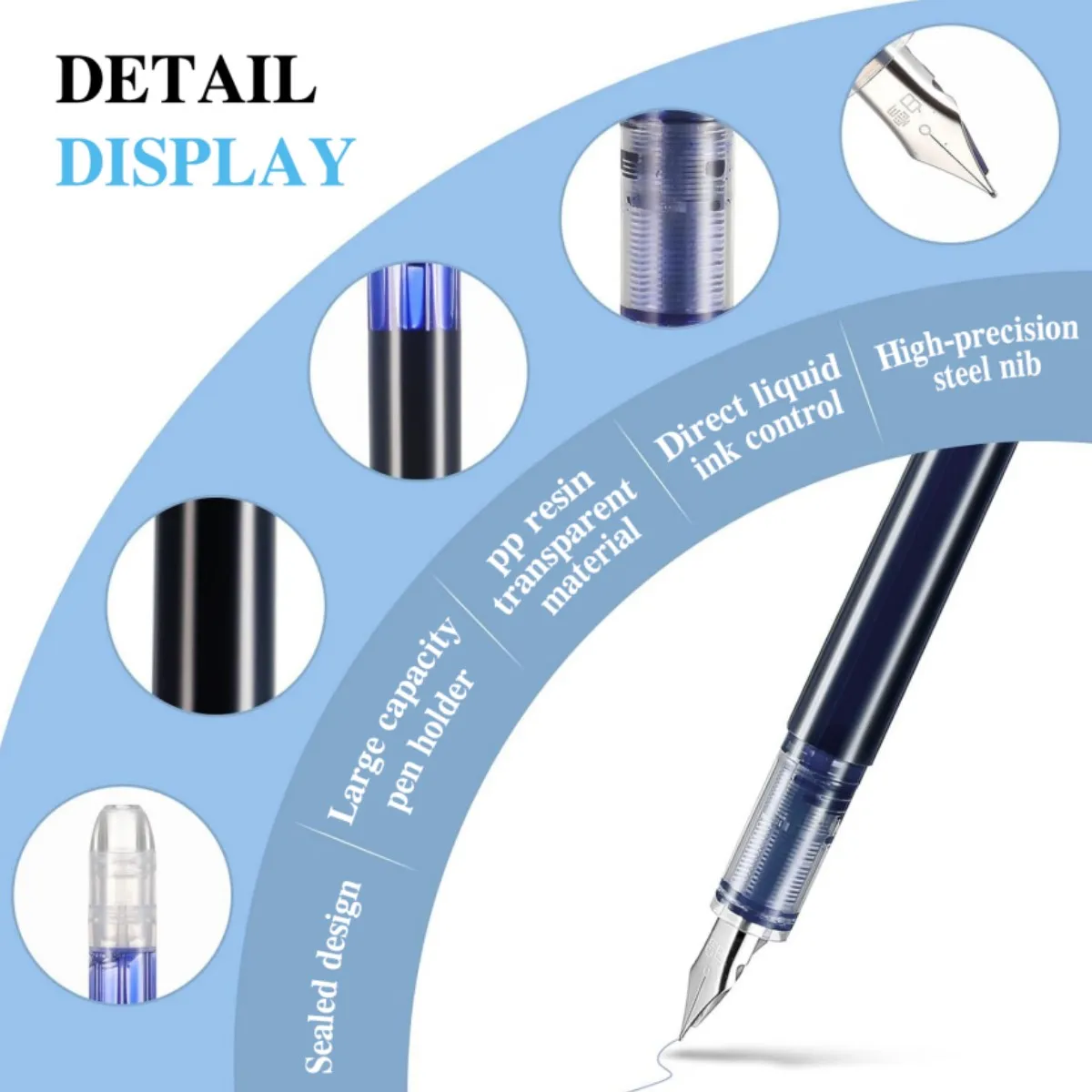 Large Capacity Disposable Fountain Pen Multi-Color Writing Ink Pens Quick-Drying Stationery F Nib Direct Liquid Pen Office Acce