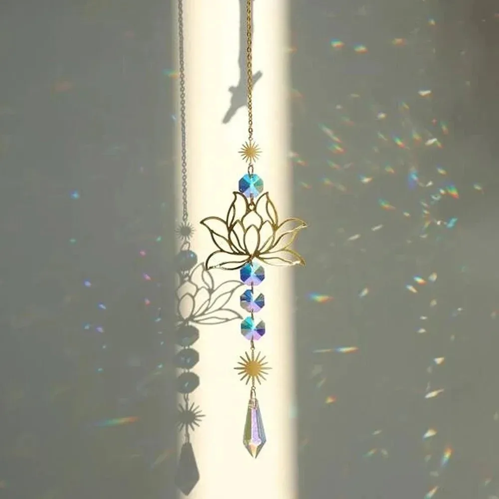 1Pc Metal Lotusand Artificial Crystal Suncatcher Charm Handmade Applicable Home Wind Chime Pendant Outdoor Garden Plant