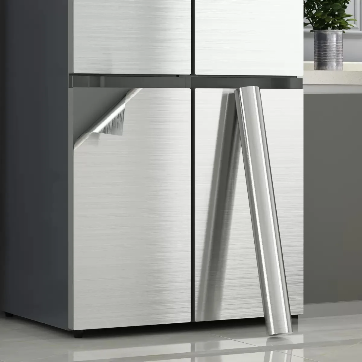 PVC Stainless Brushed Silver Removable Wallpaper Decor Film Vinyl Waterproof Oil-proof House Appliance Kitchen Elevator Sticker