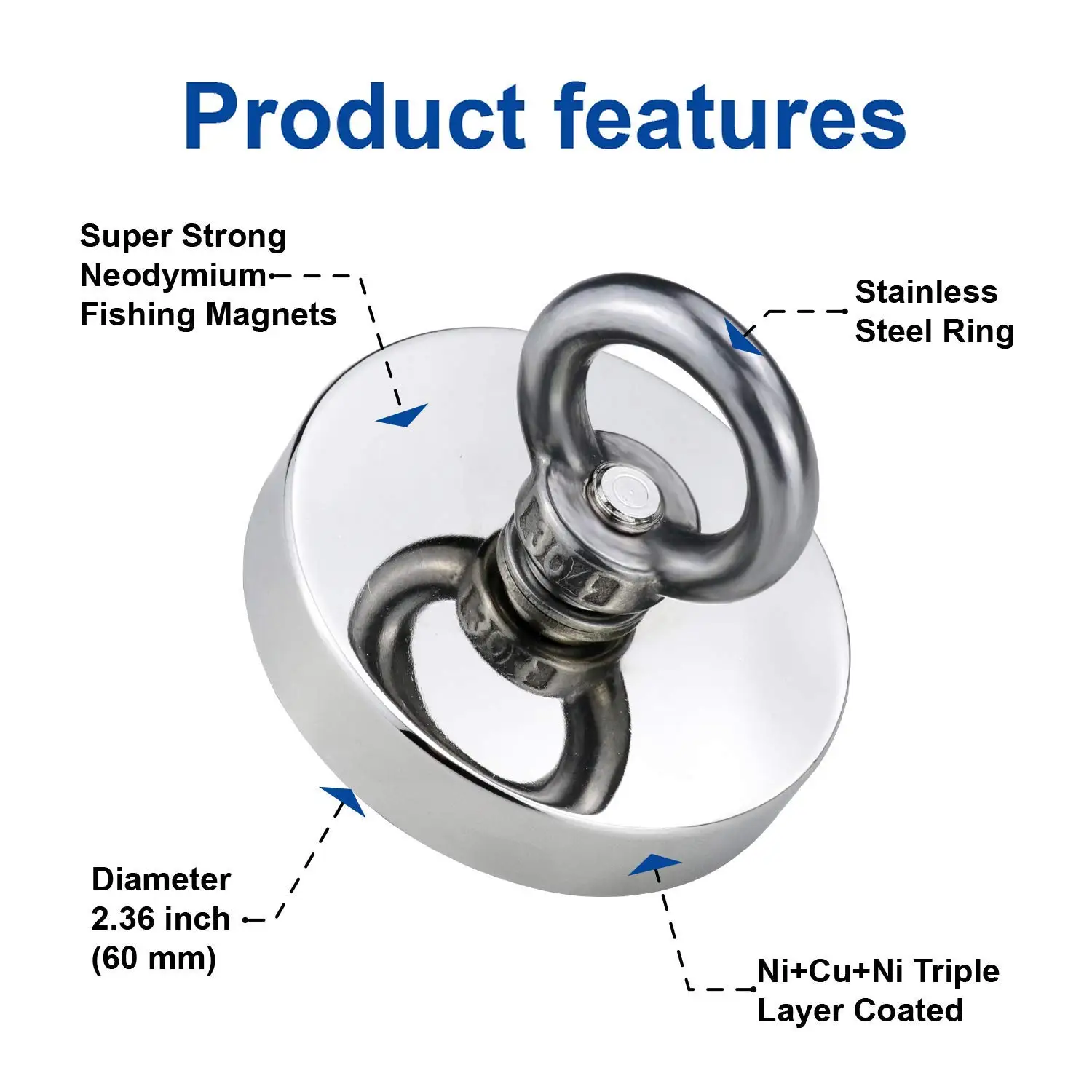 Super Strong Neodymium Fishing Magnet Hook N52 Heavy Duty Rare Earth Magnet With Countersunk Hole Eyebolt 16-90mm Salvage Magnet