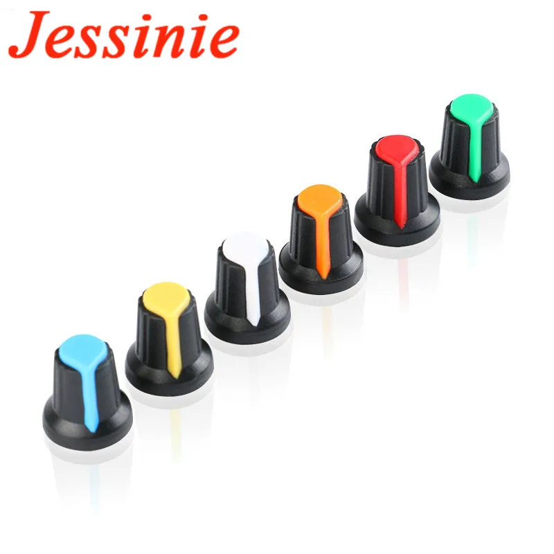 6Pcs/30pcs WH148 Potentiometer Knob Kit Plastic Knobs Cap 6mm Shaft Hole AG2 Yellow Orange Blue White Red 5value*6PCS=30PCS