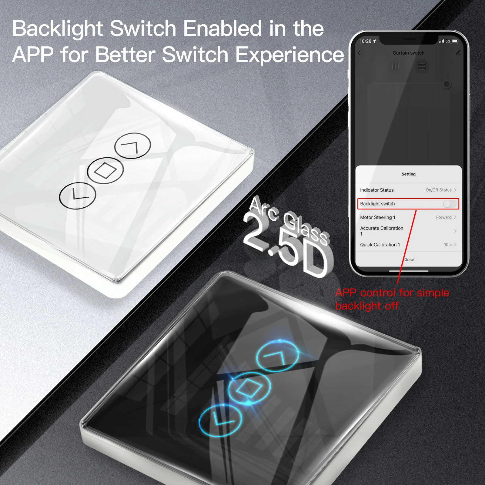 MOES WiFi Smart Curtain Switch 2.5D Arc Glass Touch Panel for Roller Blinds Shutters APP Remote Control Support Alexa GoogleHome
