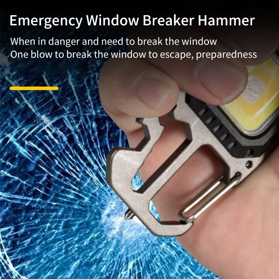 COB Keychain Work Light with Battery Display 8 Mode Rechargeable High Lumens Portable LED Light for Camping Hiking Running