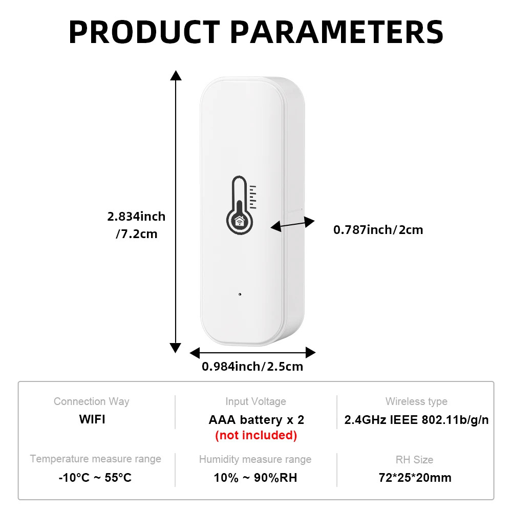 Tuya WiFi Humidity Temperature Sensor with White Color for Smart Home Battery Powered APP Monitoring Alexa Google Voice